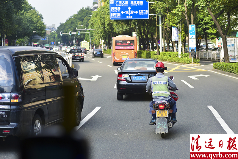摩托車在公路中穿插行駛。實習(xí)生 袁浩凱 清遠日報記者 黃昱茜 攝