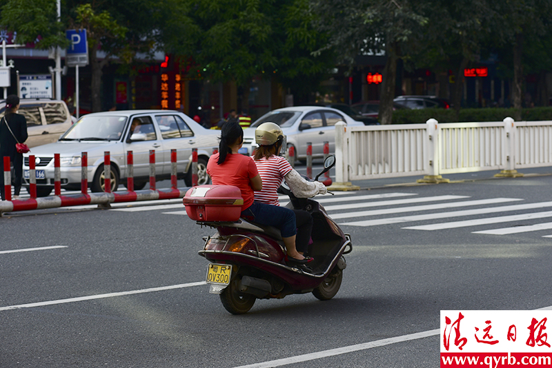 中醫(yī)院附近不戴頭盔的摩托司機。實習(xí)生 袁浩凱 清遠日報記者 黃昱茜 攝