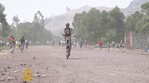 在非洲剛果的戈馬,市中心最具風(fēng)采的街景就是那些騎著木頭踏板自行車(chē)風(fēng)馳電掣的年輕人。