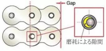 俗稱“鏈條拉長”,其實并不是內(nèi)、外鏈片被徐徐拉伸,而是插梢和滾軸的不斷摩擦,造成軸櫬套和內(nèi)部插梢之間所產(chǎn)生的間隙。由于間隙變長,因此“鏈條變長”了